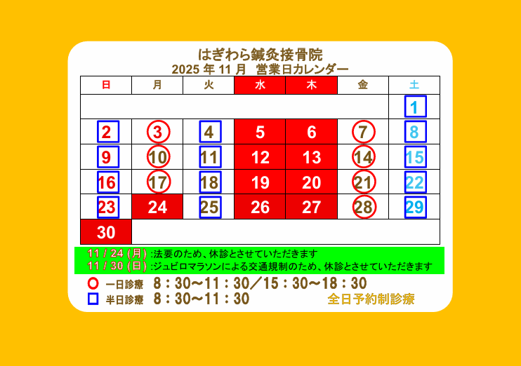 ※11/30:ジュビロマラソン開催による交通規制により、休診となります。
